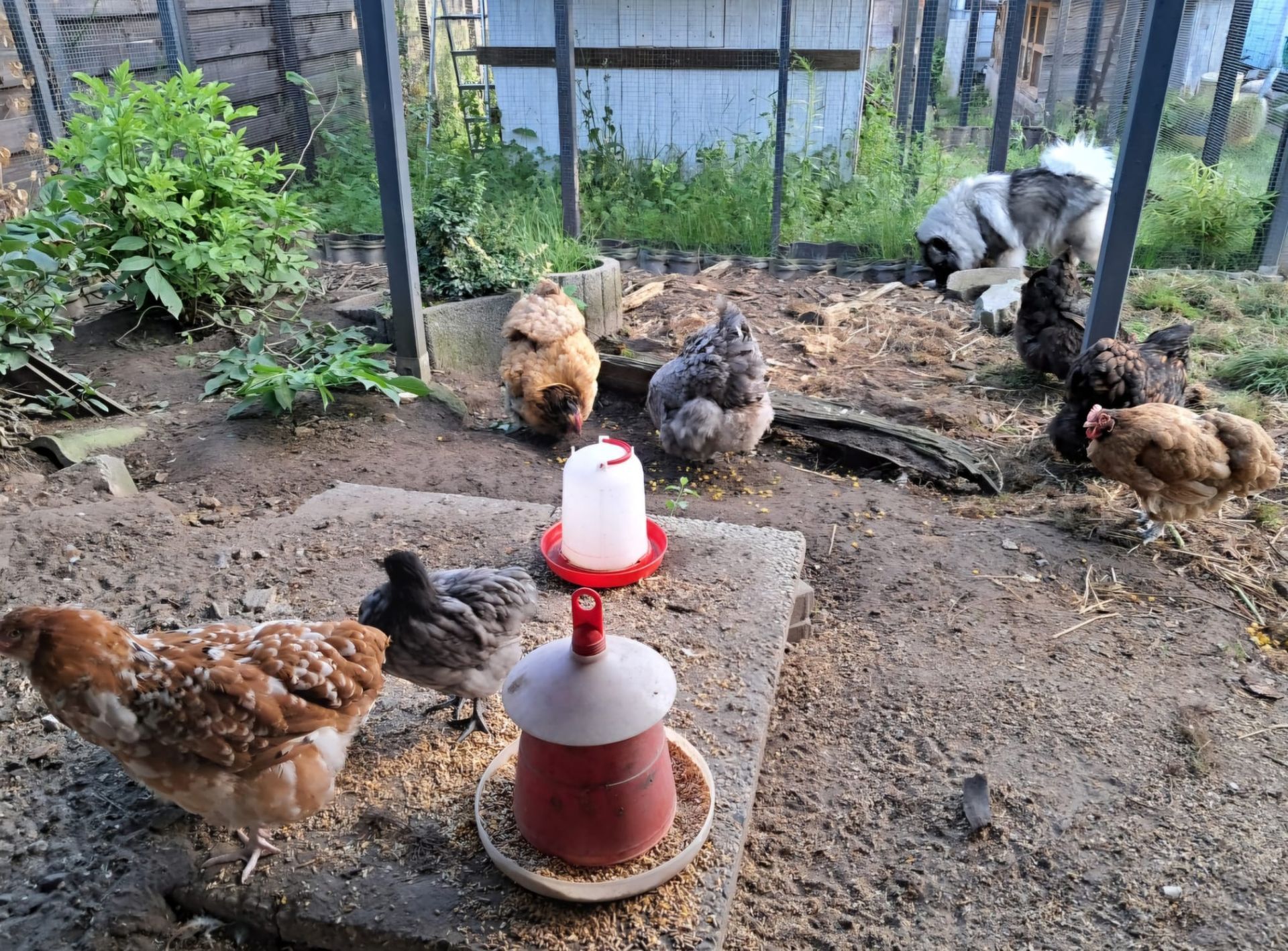 Später bei schönem Wetter machen die kleinen Wölfe den Garten unsicher und lernen unsere Hühner, Kaninchen und Fische kennen.