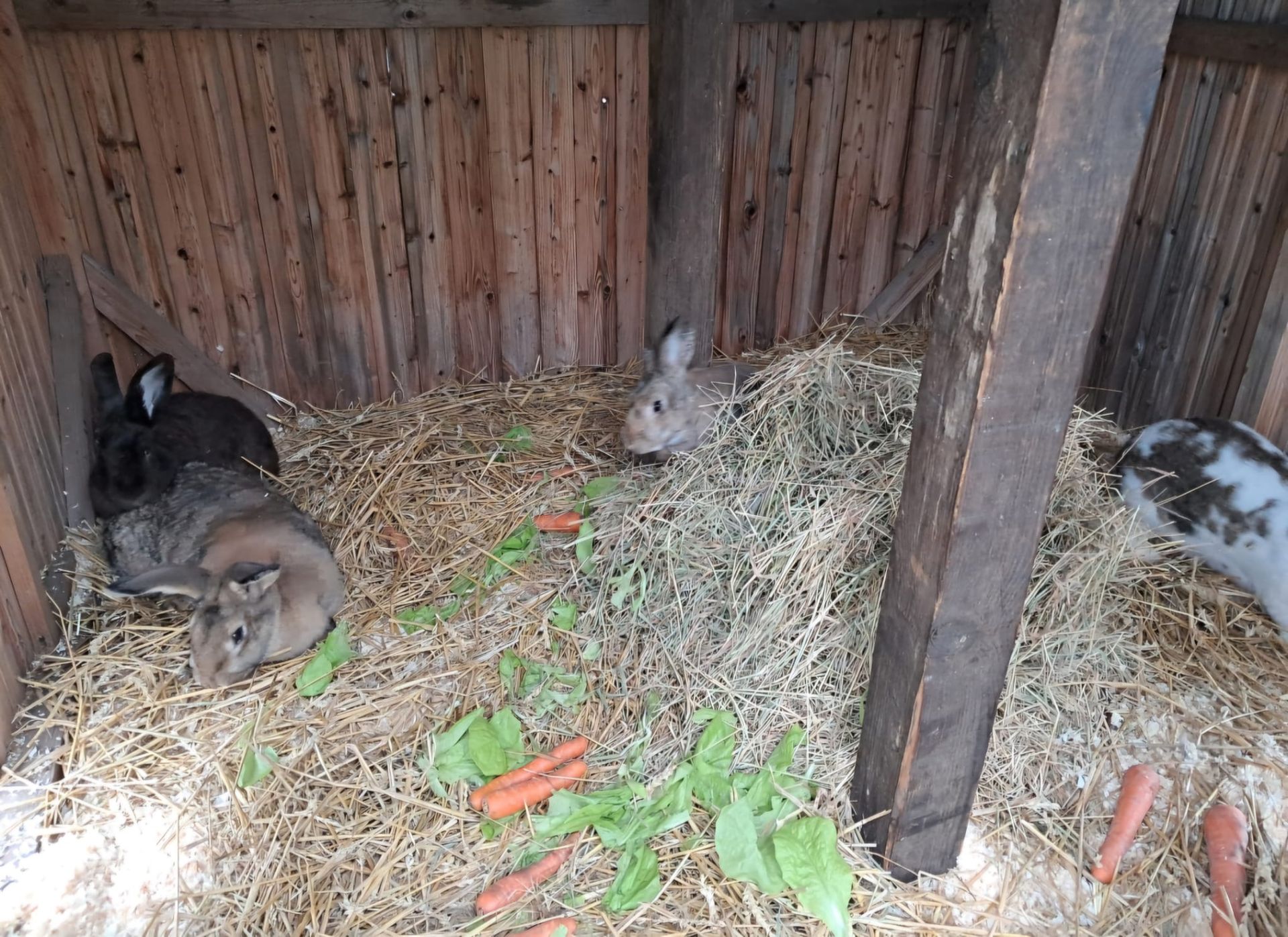 Später bei schönem Wetter machen die kleinen Wölfe den Garten unsicher und lernen unsere Hühner, Kaninchen und Fische kennen.